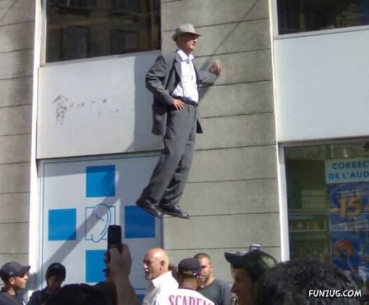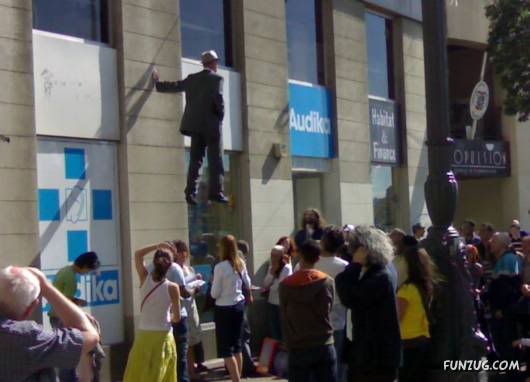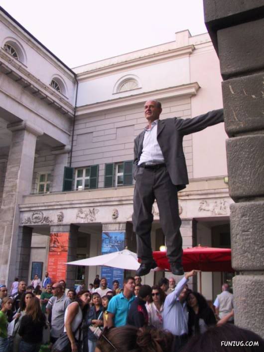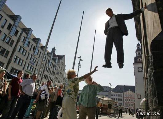 Johan Lorbeer is a German street performer. He became famous in the past few years because of his “Still-Life” erformances, which took place in the public area. His installations includes “Proletarian Mural” and “Tarzan”, which are famous in Germany. Several of these performances feature Lorbeer in an apparently impossible position.